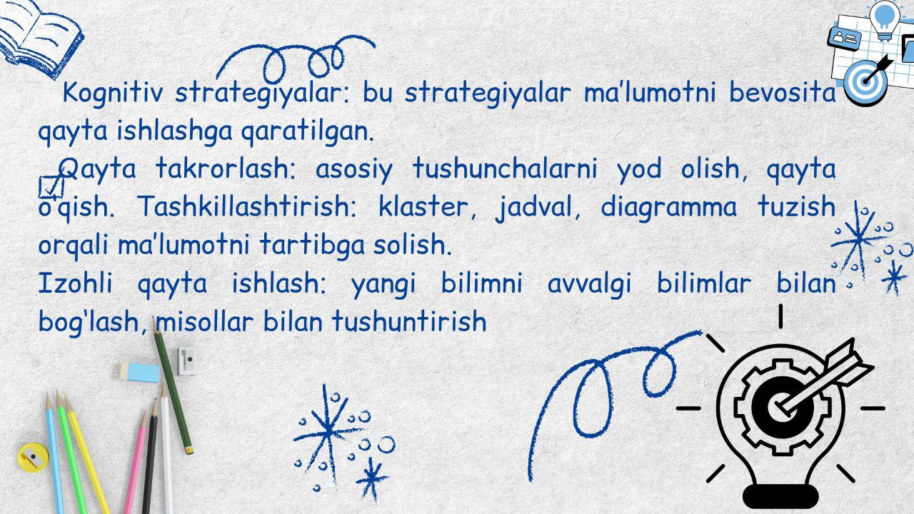 O'quvchilarni o'quv strategiyalariga o'rgatish