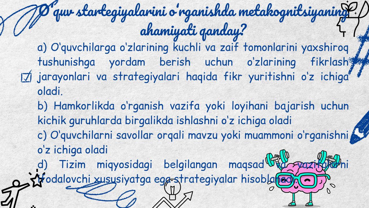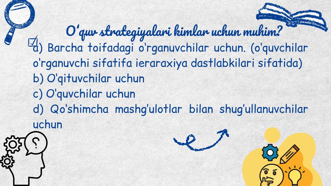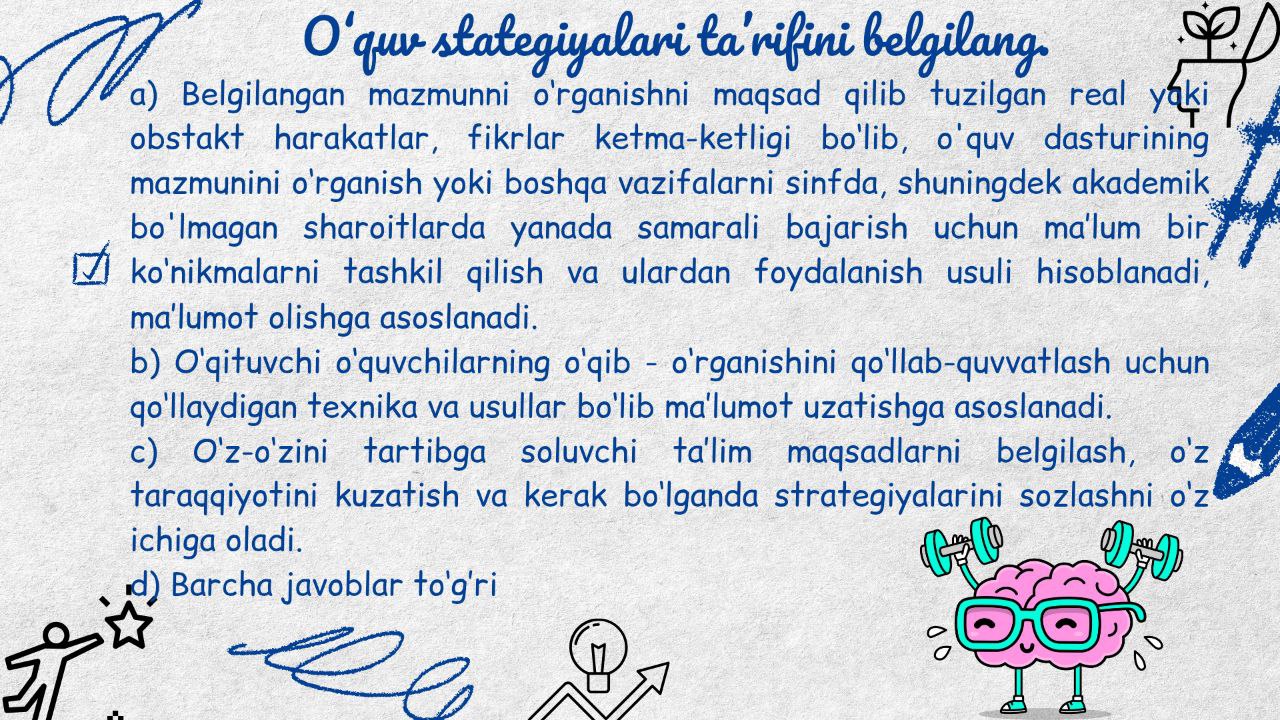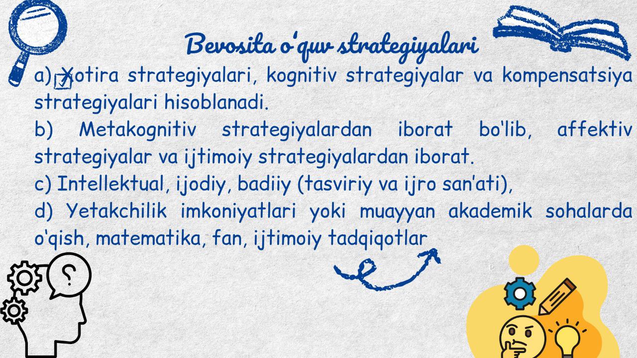 O'quvchilarni o'quv strategiyalariga o'rgatish