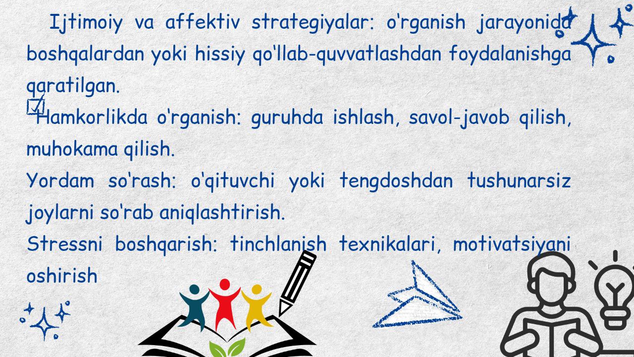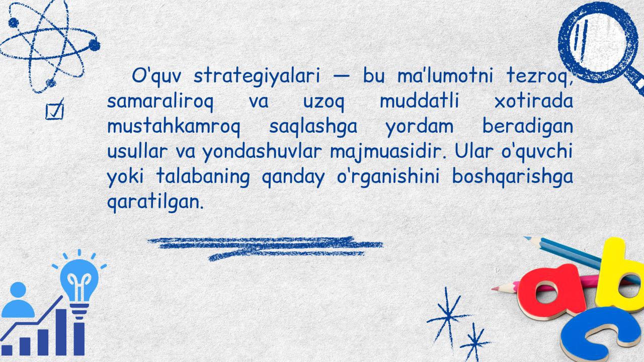 O'quvchilarni o'quv strategiyalariga o'rgatish