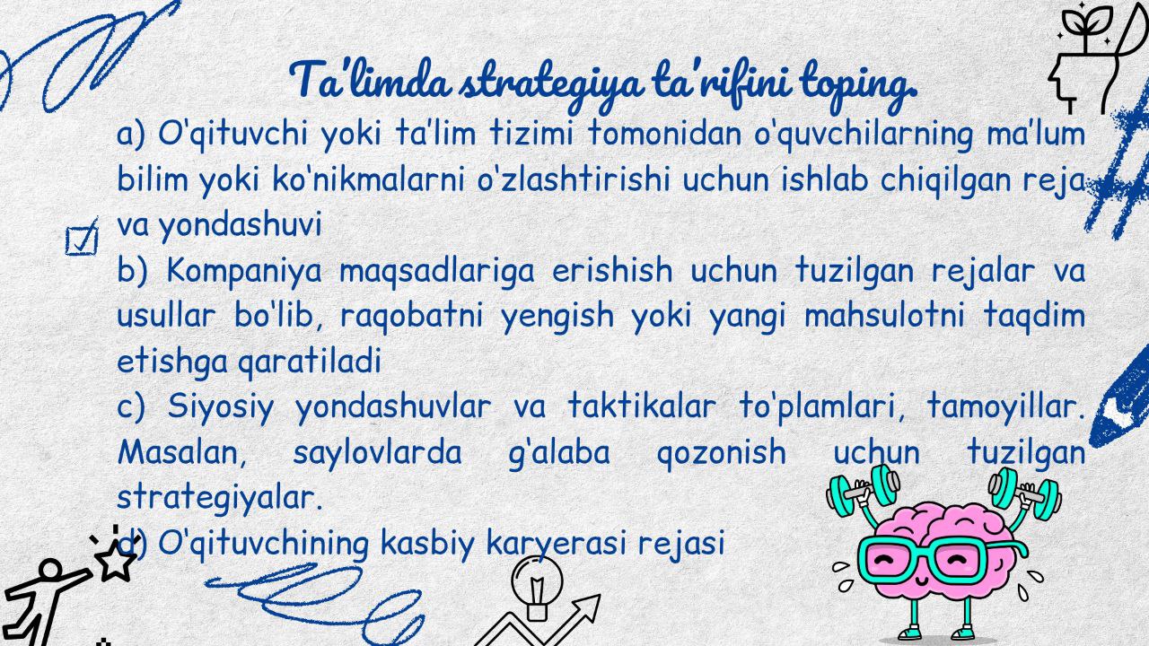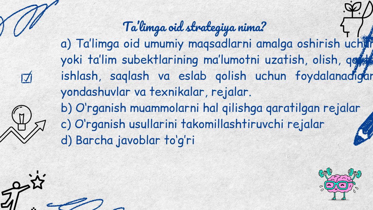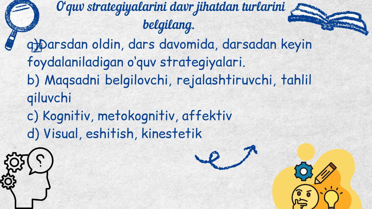 O'quvchilarni o'quv strategiyalariga o'rgatish